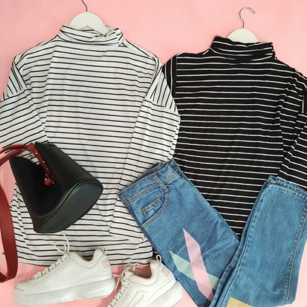 Jenis bahan kaos beragam jenisnya, bukan hanya bahan kaos saja yang tersedia di toko bahan kaos knitto tersedia juga bahan kaos polo dan bahan jaket. Jenis kaos ini memberikan kesan bentuk leher lebih panjang jadi bisa dipakai bagi yang memiliki dengan kerah tinggi maka kesan yang hadir ialah suasana hangat namun tetap nyaman dipakai. Harga gaya korea ulzzang tren blackwhite kerah tinggi motif garis. Pinggang tinggi bentuk pinggang alami. Umumnya kain yang digunakan untuk membuat bahan kaos menggunakan bahan cotton combed, carded, ada juga yang mempunyai corak unik.